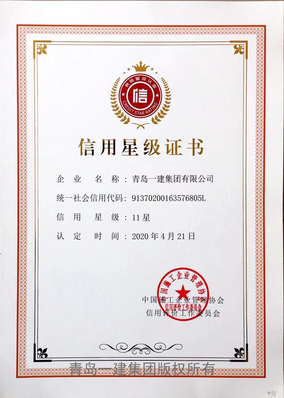山東省企業(yè)信譽(yù)等級AAA企業(yè)