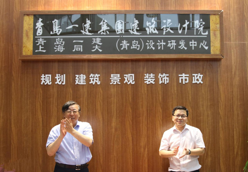 青島一建集團黨委書記、名譽董事長尚延青,青島一建集團董事長、總裁馬樹軍共同為建筑設(shè)計院揭牌